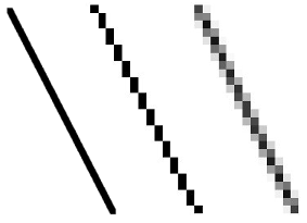 Note that antialiasing does not give a perfect image, but it can reduce the "jaggies" that are caused by aliasing (at least when it is viewed on a normal scale).