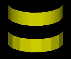 Note in particular that you can assign different normal vectors at each vertex of a polygon. Now, you might be asking yourself, "Don't all the normal vectors to a polygon point in the same direction?" After all, a polygon is flat; the perpendicular direction to the polygon doesn't change from point to point. This is true, and if your objective is to display a polyhedral object whose sides are flat polygons, then in fact, all the normals of each of those polygons should point in the same direction. On the other hand, polyhedra are often used to approximate curved surfaces such as spheres. If your real objective is to make something that looks like a curved surface, then you want to use normal vectors that are perpendicular to the actual surface, not to the polyhedron that approximates it. Take a look at this example: